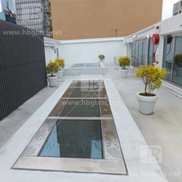 防火天頂?shù)嘏_,其玻璃可以滿足在火災(zāi)發(fā)生時達到防火、隔熱、承重作用,解決了采光井的火災(zāi)煙通效應(yīng)的問題,即使附近發(fā)生火災(zāi),仍可輕松走動;玻璃地臺每平方米承重500kg以上,達到水泥樓板的承重設(shè)計要求。一般用于商場、酒店、醫(yī)院、購物中心、物流中心、影劇院、車站、機場等政府辦公樓等場所,代替非防火的采光井,解決普通采光井不防火的問題。