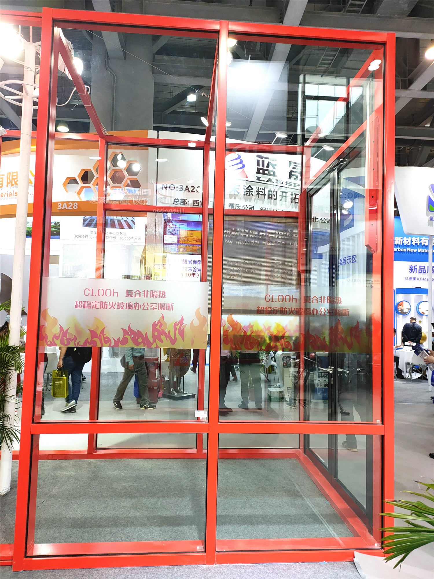 現場還展示了無縫拼接的防火玻璃,但陳總坦言,雖然無縫拼接申請了國家專利,但那不是恒保主推的產品,因為有框的更安全一些,并建議客戶盡可能選用有框的。