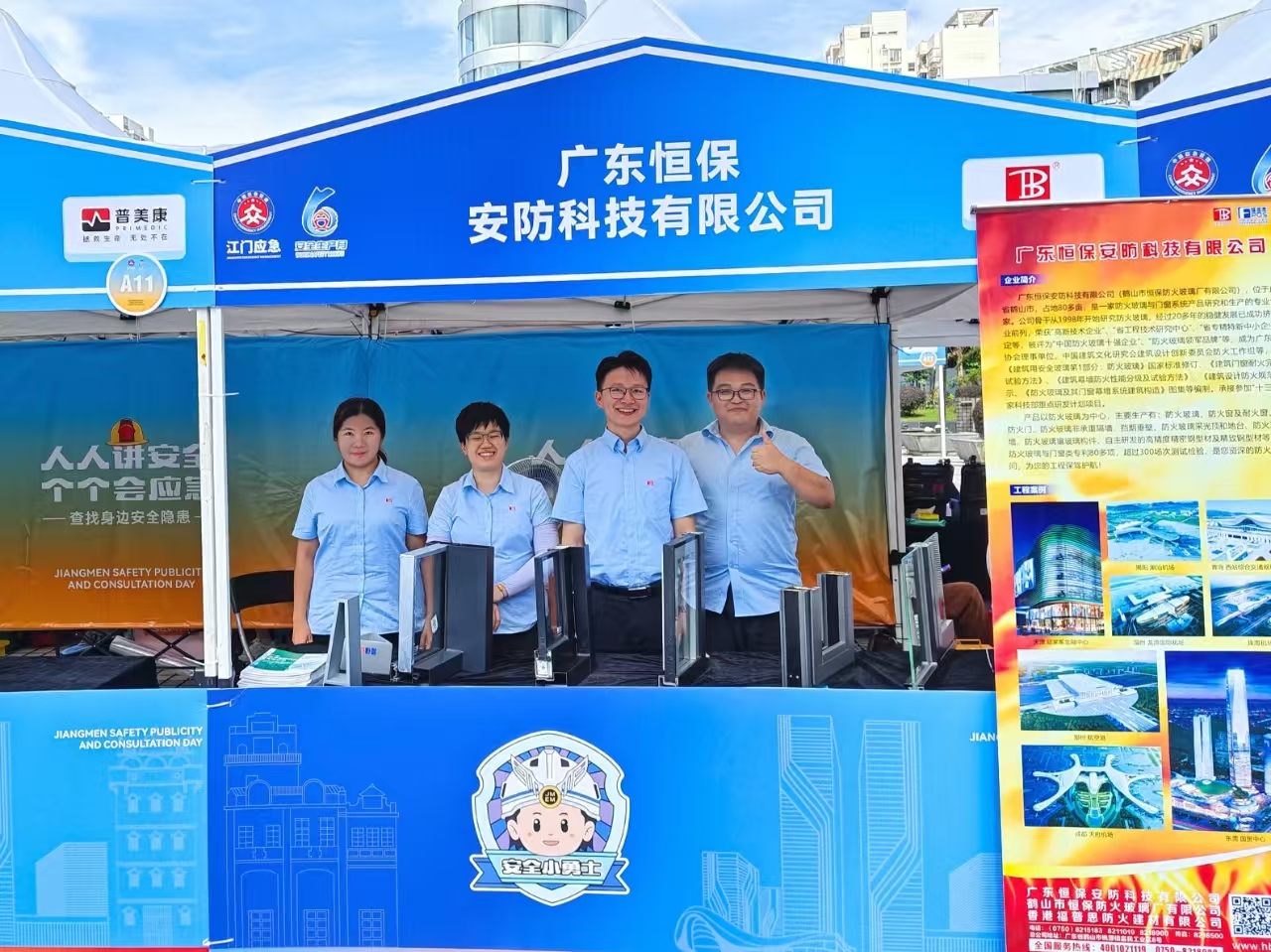恒保公司深耕防火玻璃及其門窗幕墻領域多年,始終以“讓每個人都能生活在更安全的建筑空間里”為使命,以科技創新驅動產品升級,以優質服務贏得客戶信賴。此次受邀參加江門市 “安全宣傳咨詢日” 活動,不僅是政府對公司實力的認可,更是一份沉甸甸的責任。在未來,恒保公司將繼續發揮專業優勢,研發更多高品質防火產品,為社會的消防安全事業貢獻更大力量,守護千家萬戶的平安!